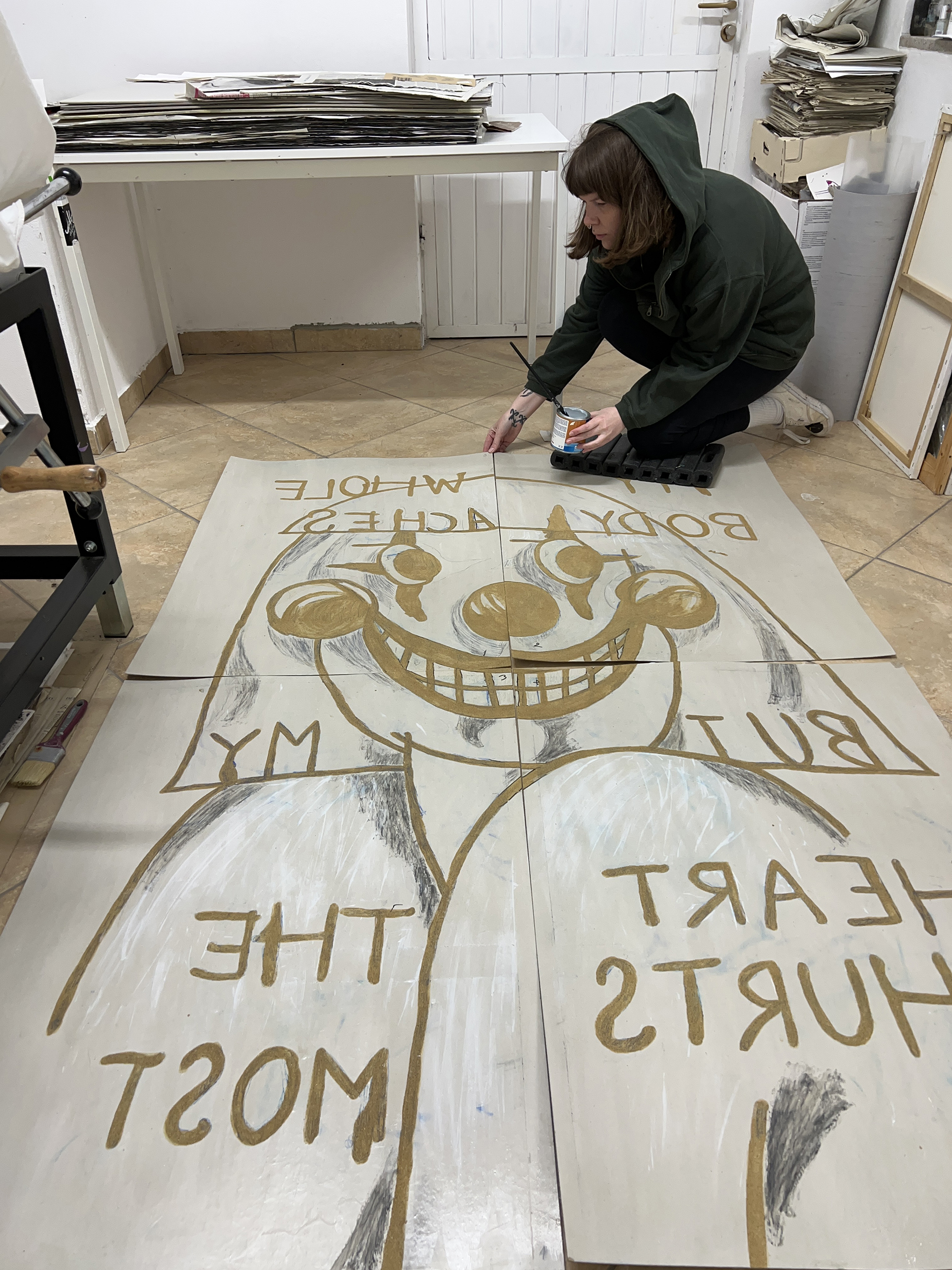 viennacontemporary 2025, booth #E56, Vienna (AT). Represented by Tkalka Gallery. Photo: Courtesy of the artistCake at Hiša kulture, Pivka (SI), 2024. Photo: Jaka Babnik / Courtesy of the artistYesterday I Cried in LiDL, 2020. Photo: Jaka Babnik / MGLC ArchiveCake at Tkalka Gallery, Maribor (SI), 2025. Photo: Gregor Salobir / Tkalka GalleryMemento mori III, 2018. Photo: Courtesy of the artistCake, screen print detail, 2024. Photo: Courtesy of the artistCake 3, 2024. Photo: Jaka Babnik / Courtesy of the artistLimbo, MGLC, Ljubljana (SI), 2020. Photo: Urška Boljkovac / MGLC ArchiveCake set-up, Hiša kulture, Pivka (SI), 2024. Photo: Rob Jones. Courtesy of the artistBittersweet, 2018. Photo: Courtesy of the artistPoodle Royal, diptych, 2021. Photo: Courtesy of the artistStudio work, 2022. Photo: Courtesy of the artistLimbo set-up at MGLC, Ljubljana (SI), 2020. Photo: Hanna Juta KozarStudio work, 2024. Photo: Courtesy of the artistZines, 2025. Photo:Courtesy of the artistLimbo, 2020. Photo: Jaka Babnik / MGLC ArchiveStudio work, 2021. Photo: Hanna Juta Kozar