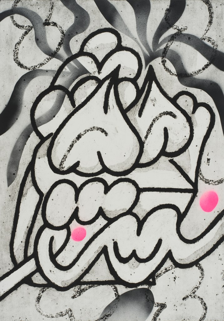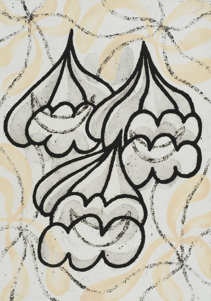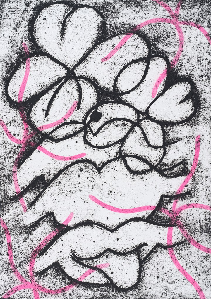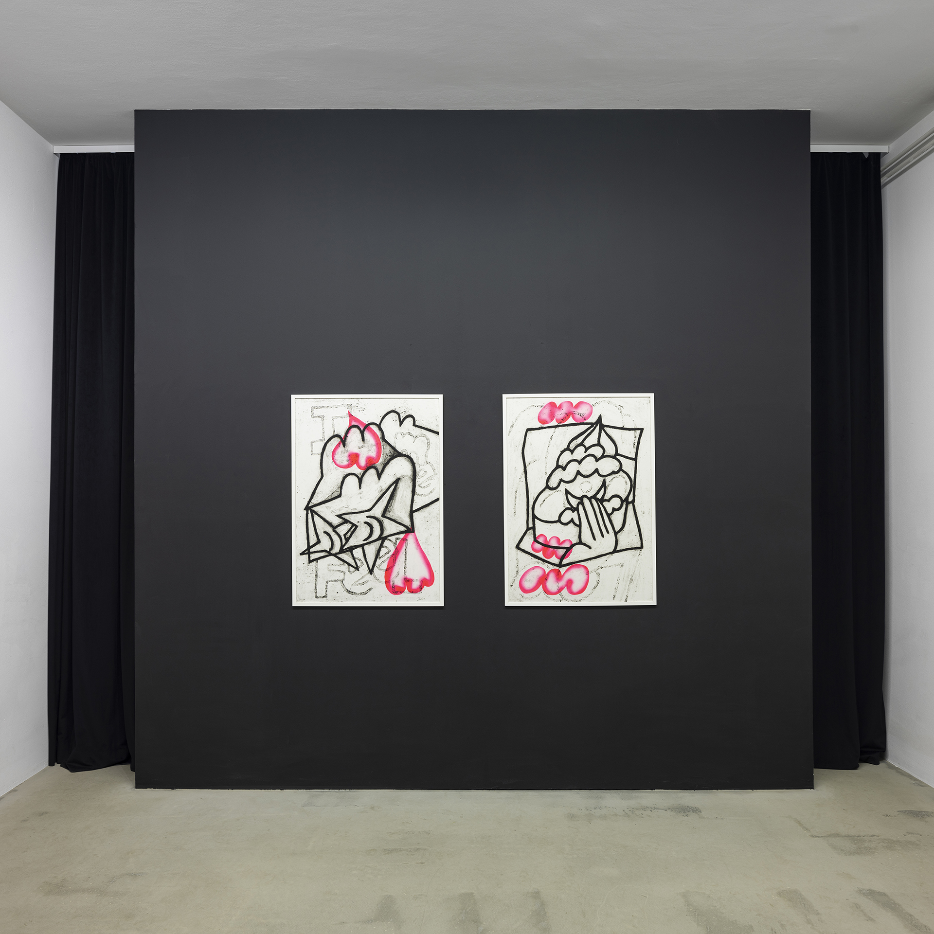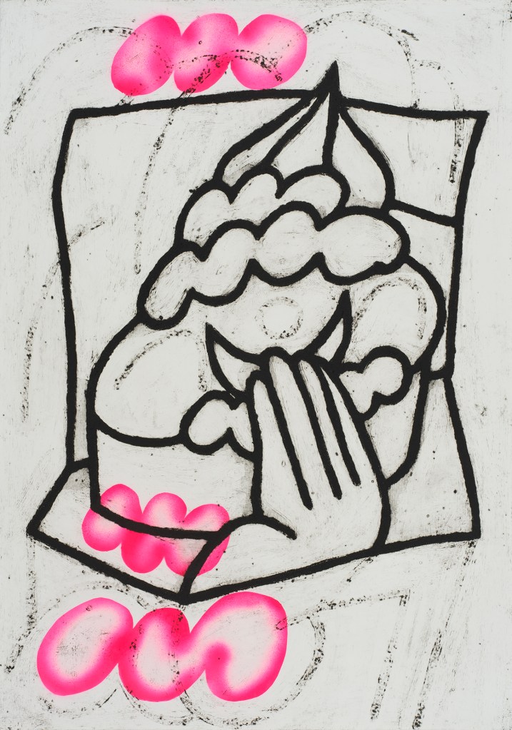 The graphics series Cake focuses on the intimate questioning of self-love through the motifs of self-portraiture, cake and flowers. The artist explores personal states of mind, drawing from childhood memories and feelings of carefree and joyful birthdays. This is not a nostalgic return to the past, but a starting point for reflecting on the present: how self-love is formed, when it becomes an act that requires conscious effort, and how we experience it in the present moment.