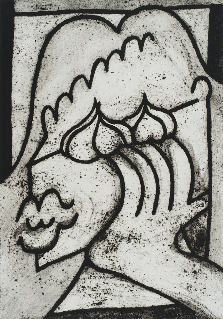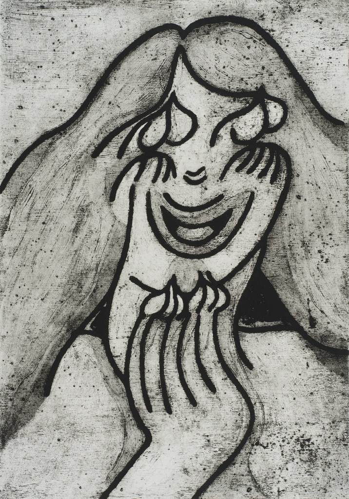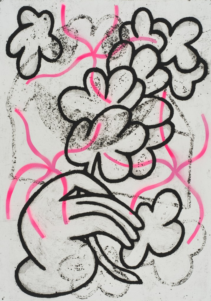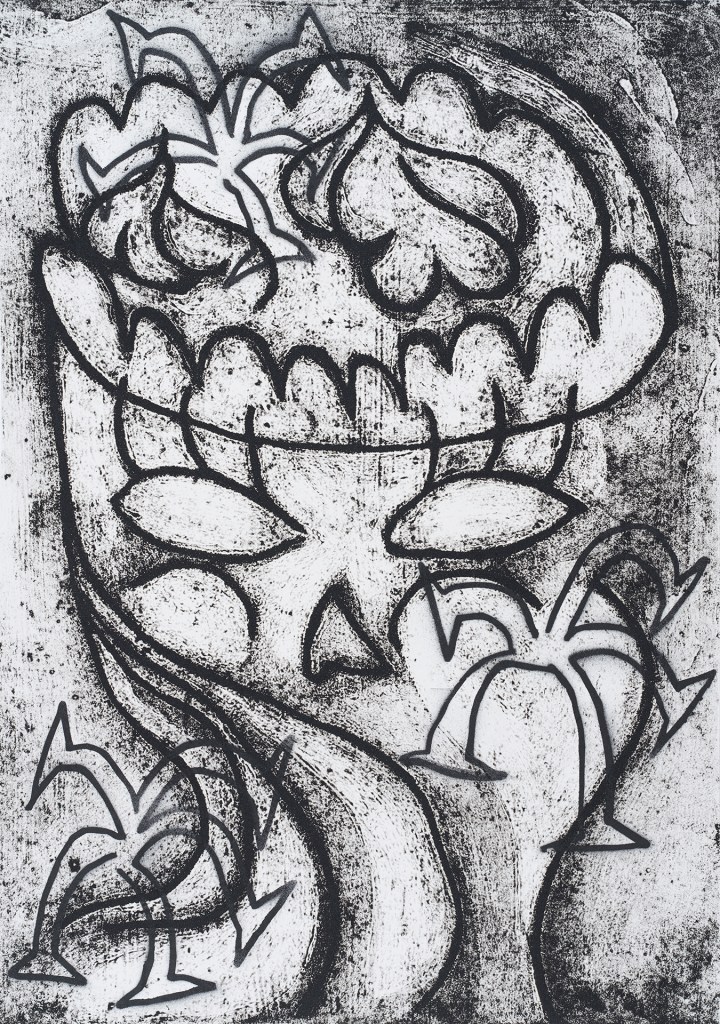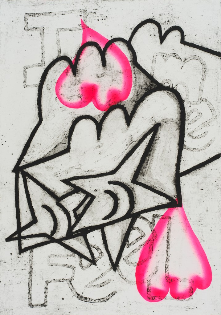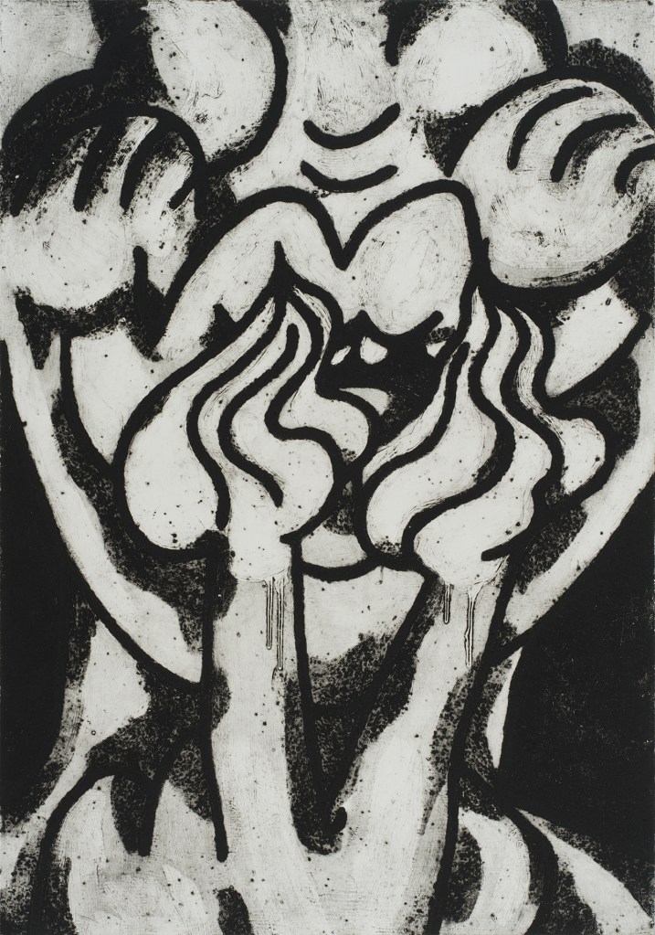 The graphics series Cake focuses on the intimate questioning of self-love through the motifs of self-portraiture, cake and flowers. The artist explores personal states of mind, drawing from childhood memories and feelings of carefree and joyful birthdays. This is not a nostalgic return to the past, but a starting point for reflecting on the present: how self-love is formed, when it becomes an act that requires conscious effort, and how we experience it in the present moment.
